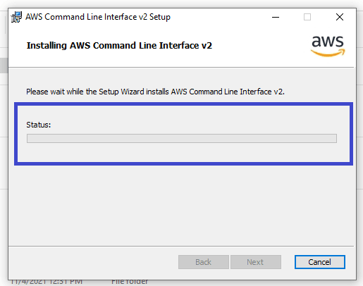 After clicking on Install, it will take about 1 minute to install the AWS CLI on your device.